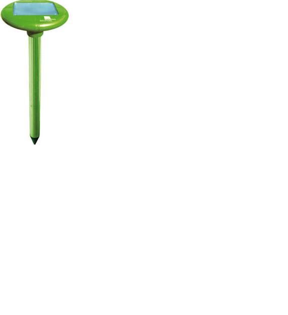 Emite ondas de soniso par ahuyentar topos, ratas de campo, ratones y ratas de una zona circundante de unos 650 m2. Muy apropiado para jardines y céspedes.