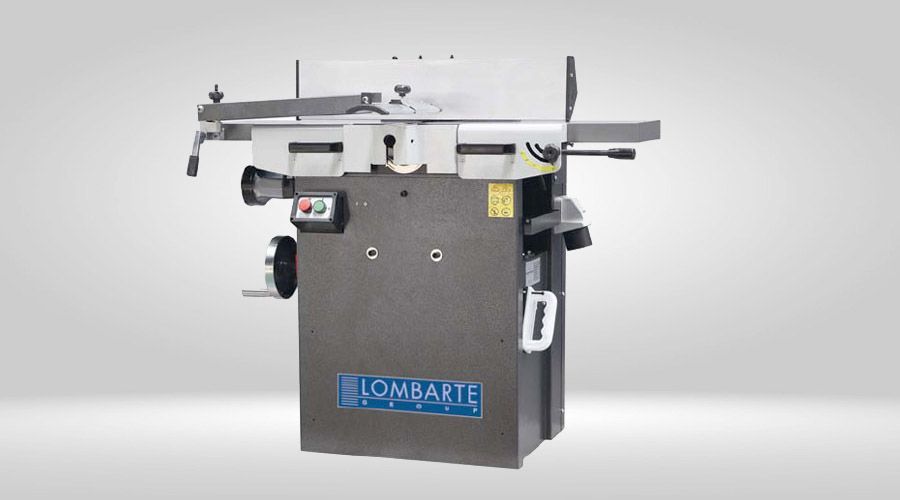 Combinada con cepillo regrueso de uso semi-industrial fabricada en fundición gris. Mesa de regruesar soportada por husillo central. Bancada de cepillar en oxicorte. Guía de aluminio inclinable 0-45º. Ambas mesas se levantan simultáneamente para la función de regruesado con un resorte para facilitar su elevación sin esfuerzo. Blocaje de seguridad, interruptor de seguridad y paro de emergencia. Portacuchillas de 75 mm de diámetro con 24 y 36 cuchillas. Motor monofásico de 4 cv. 240 V