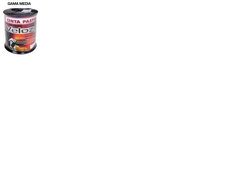 Bobina de 200 m., de cinta conductora, veloz, de gama media, con 4 hilos conductores de acero inoxidable de 0,16 mm. apropiada para la instalación de cercas electrificadas, para el cierre de parcelas.