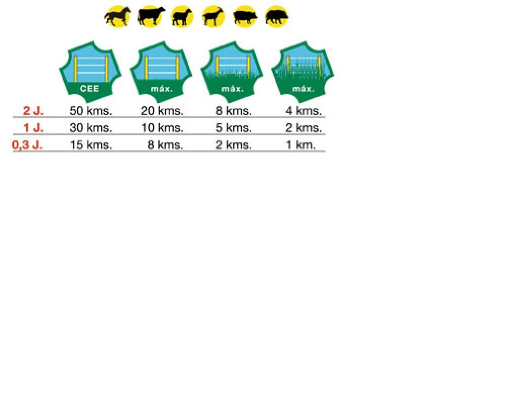 Alimentación: Batería de 12 V. (NO INCLUIDA) Consumo: 40-180 mA. Voltaje de salida: 10 Kv. Energía: 0,30-2 J. Panel solar: 15 W. Voltaje sobre 500 Ohmios: 5 kv. Control luminoso de batería. Dos años de garantía en pastor.